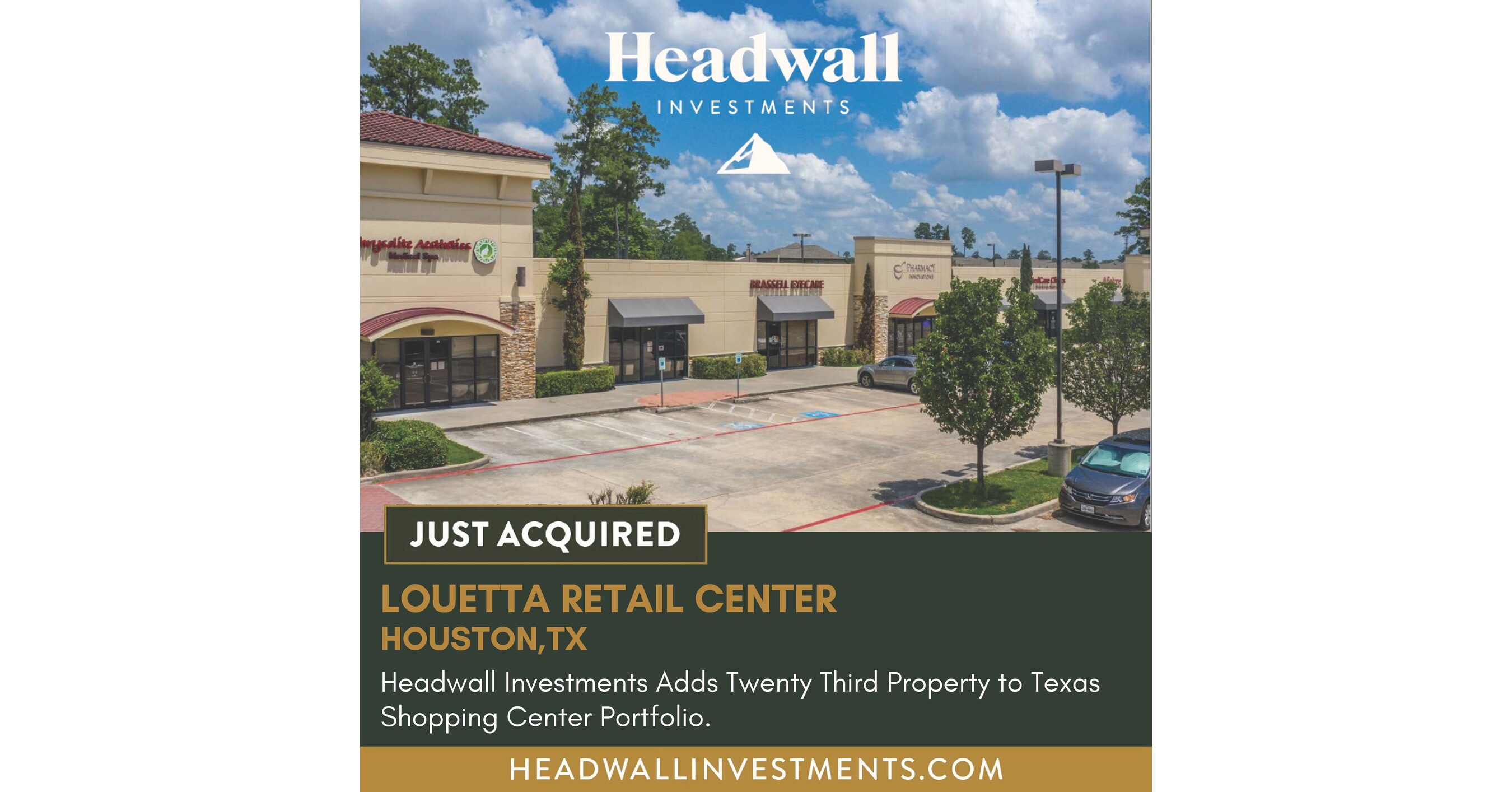 Headwall Investments closed its 23rd unanchored shopping center acquisition, surpassing $120M in equity deployed. JLL Income Property Trust announced a property sale. These real estate transaction updates were released via PR Newswire 16 hours ago.